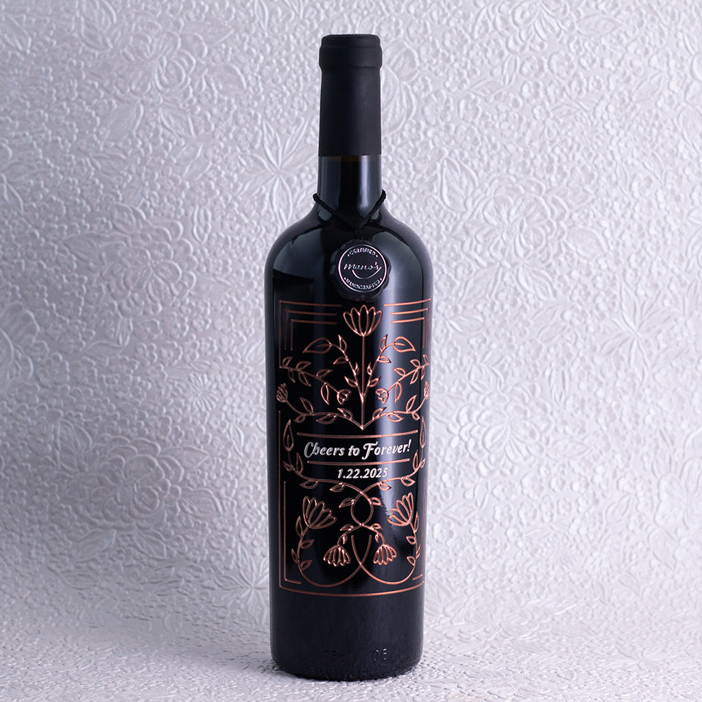 This versatile bottle is perfect for any occasion, allowing you to express your heartfelt wishes and celebrate life's milestones in a truly personalized way. Whether you're looking for a gift for a loved one's birthday, a couple's anniversary, or to commemorate a special wedding day, the "Copper Custom Frame Etched Wine Bottle" is a perfect choice.