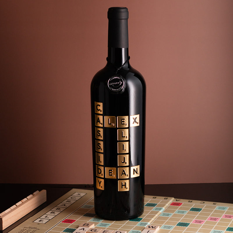 EXQUISITELY ETCHED SCRABBLE® WINE BOTTLE